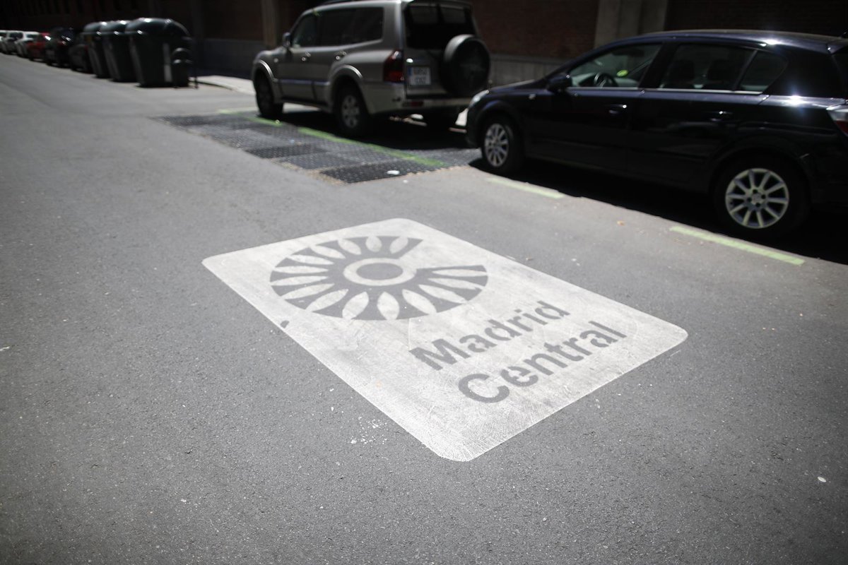 Una señal de Madrid Central en la acera que indica la entrada a la zona. - Eduardo Parra - Europa Press