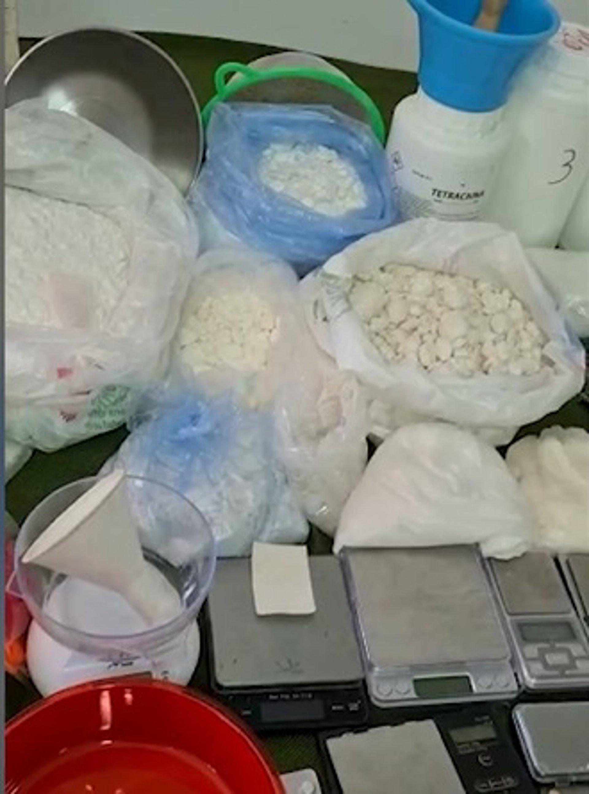Igualmente, intervinieron prensas, productos químicos y numerosos elementos y utensilios para la preparación y distribución de las diferentes sustancias.