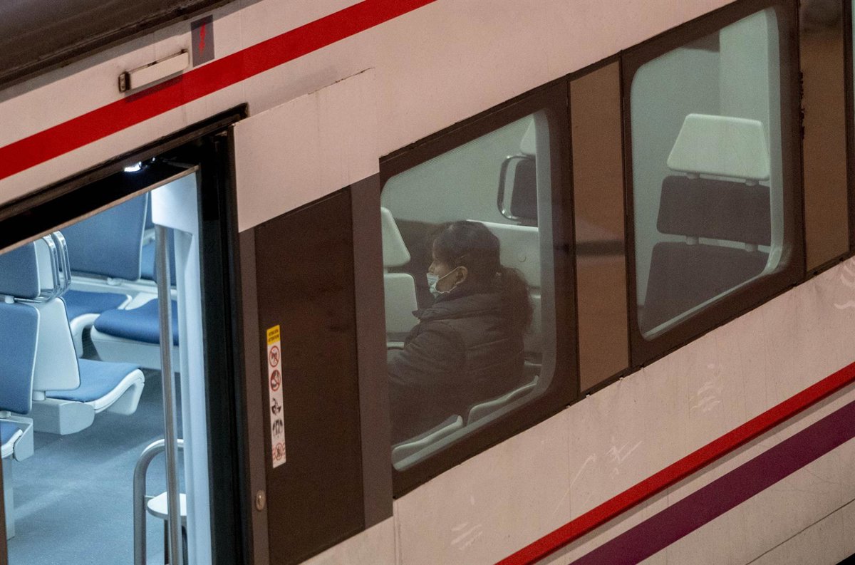 Una mujer con mascarilla dentro de un tren de Cercanías, en la estación Puerta de Atocha-Almudena Grandes - Alberto Ortega - Europa Press