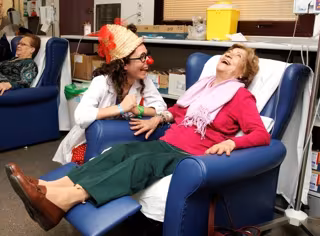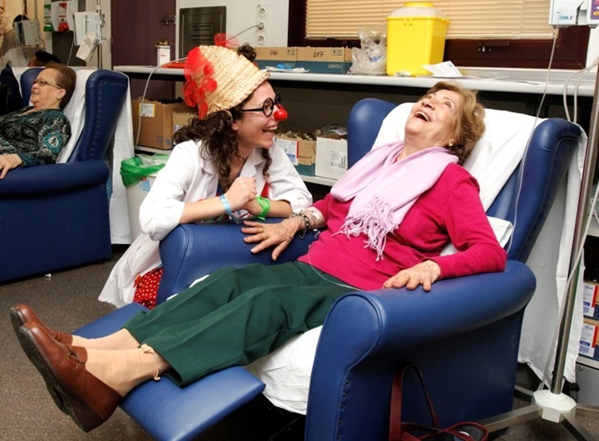 Los pacientes del Hospital de Día de Oncología y el Hospital de Día de Nefrología del Universitario de Getafe han recibido la visita de los payasos de la Asociación 'Payasosalud', que han llevado a cabo una actuación dirigida a aliviar el estrés del entorno hospitalario, contribuyendo a canalizar emociones y liberar tensiones.