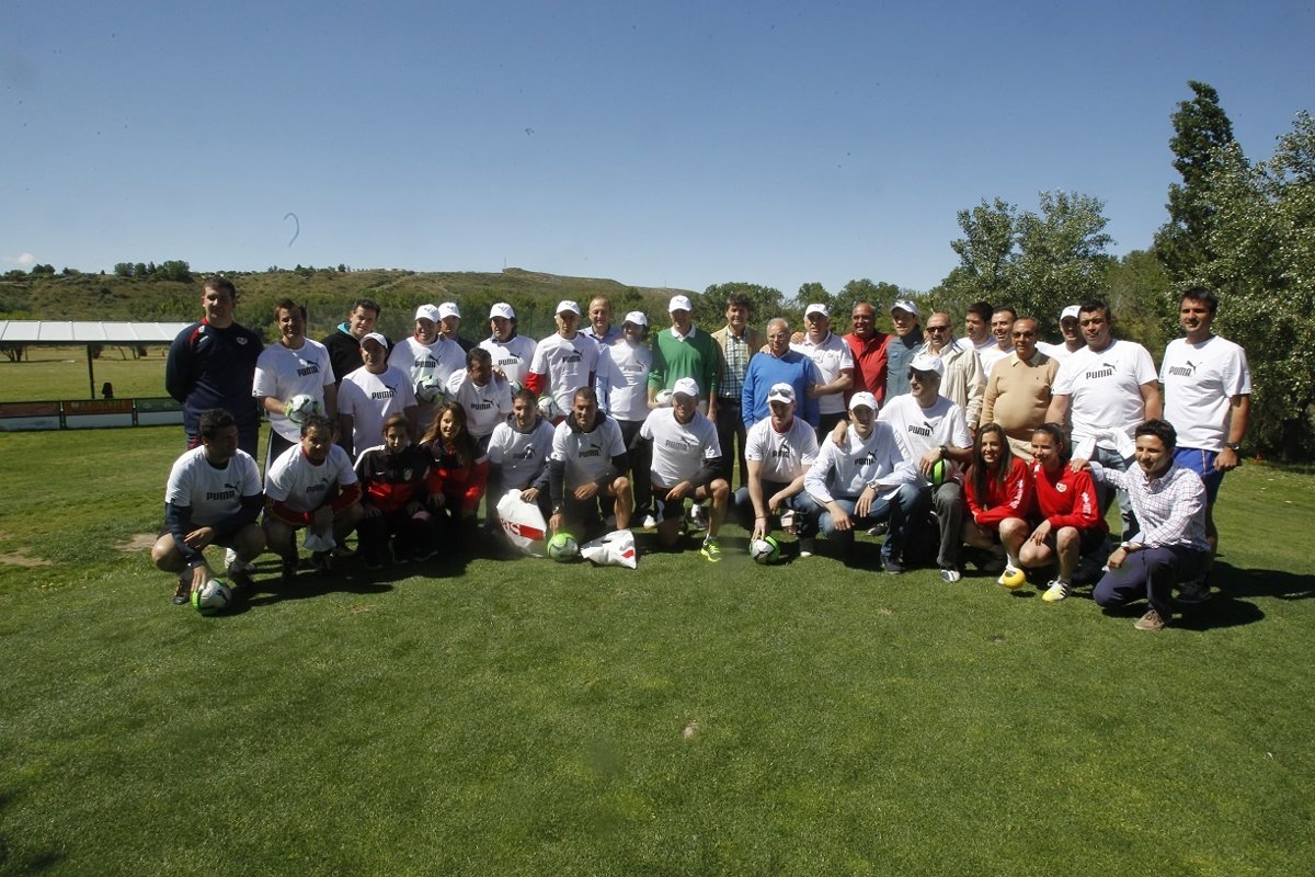 Los exfutbolistas Milinko Pantic, Francisco 'Lobo' Carrasco, Juan Carlos Pedraza, Marcos Alonso, Agustín Rodríguez, Quique Estebaranz, y Dani García, entre otros, y el tirador José Luis Abajo 'Pirri', promocionaron este miércoles un nuevo deporte, el 'Futgolf', que combina el fútbol y el golf, en el Club de Golf de Aranjuez (Madrid).
