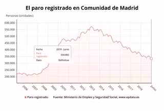 El número de parados registrados en las oficinas de los servicios públicos de empleo (antiguo Inem) en la Comunidad de Madrid bajó un 1,91 por ciento en junio respecto al mes anterior, con 6.523 parados menos, dejando el número de desempleados en la región en 334.602 personas, según ha informado este martes el Ministerio de Trabajo, Migraciones y Seguridad Social.