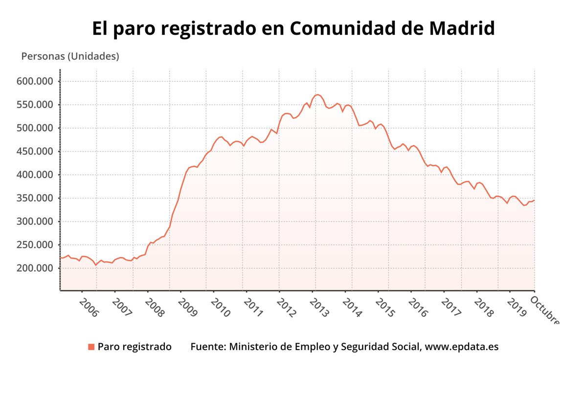 El número de parados registrados en las oficinas de los servicios públicos de empleo (antiguo Inem) en la Comunidad de Madrid subió un 1,01 por ciento en octubre con 3.470 personas más con relación al mes anterior, lo que sitúa la cifra global de desempleados en 345.986