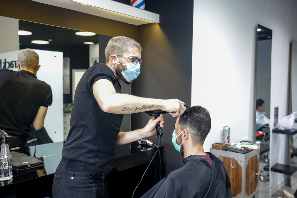 Un empleado de la peluquería Krackhair (C/Embajadores, 3, Madrid) abierta - Ricardo Rubio - Europa Press