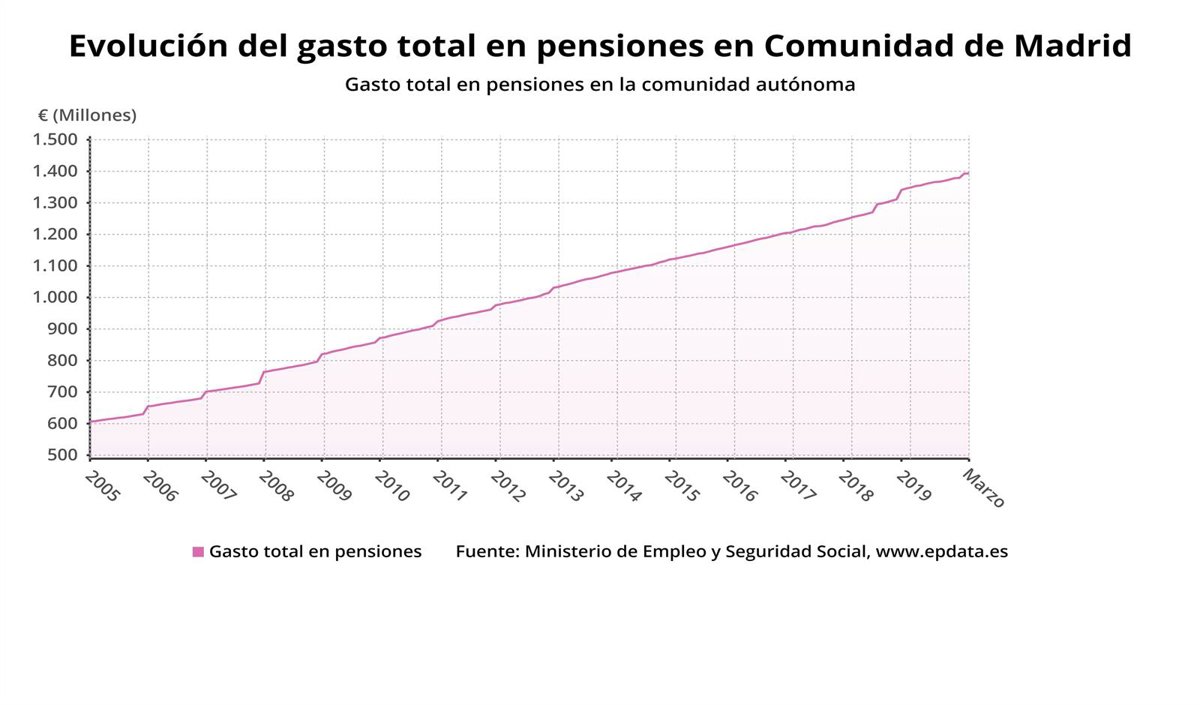 La pensión media en la Comunidad de Madrid se situó en 1.185,26 euros en el presente mes de abril, lo que supone un incremento del 1,9 por ciento en relación al mismo periodo del año pasado, según ha informado este martes el Ministerio de Inclusión, Seguridad Social y Migraciones.