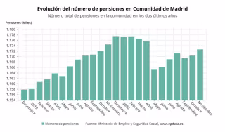 Evolución del número de pensiones en la Comunidad de Madrid - EP DATA