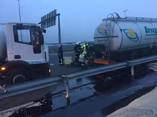 Una avería en uno de los tubos de la parte inferior de un camión cisterna que portaba 28.000 litros de aceite reciclado ha provocado que este líquido se haya derramado a lo largo de la mediana, lo que ha obligado a cortar la circulación en el carril sentido La Coruña a la altura del municipio de Las Rozas.