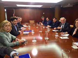El consejero de Vivienda, David Pérez, y el presidente de CEIM, Miguel Garrido, mantienen una reunión con sus respectivos equipos sobre la situación de la vivienda en la región. - COMUNIDAD DE MADRID