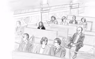 Uno de los dibujos de la exposición 'PrisonBlues: dibujando el juicio del Procés'. - JAIME RULL