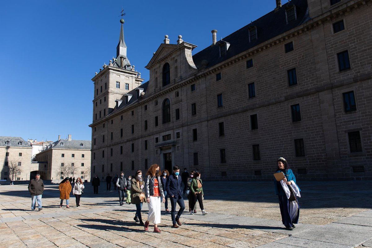 Archivo - Una actriz de la asociación Deverde (1d) interpreta a la esposa de Felipe II, María Manuela de Portugal, como guía para un grupo de turistas en una vía de San Lorenzo de El Escorial - Rafael Bastante - Europa Press - Archivo