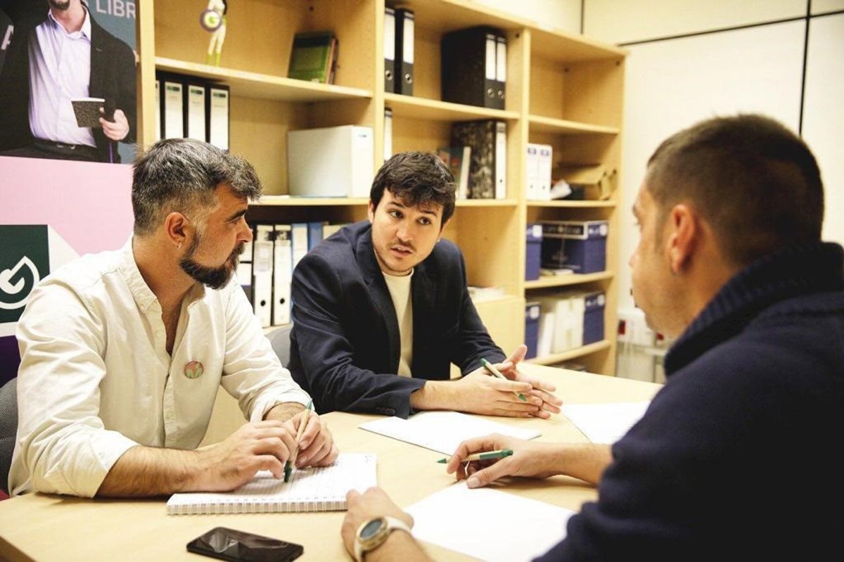 El portavoz de Más Madrid en la Asamblea, Pablo Gómez Perpiny, en una reunión junto al grupo municipal de Ganar Móstoles. - EUROPA PRESS