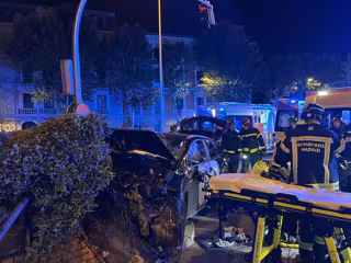 Los Bomberos del ayuntamiento de Madrid han acudido al lugar del accidente para rescatar del interior al conductor y al pasajero en estado muy grave, mientras que la otra persona ha conseguido salir por sus medios.