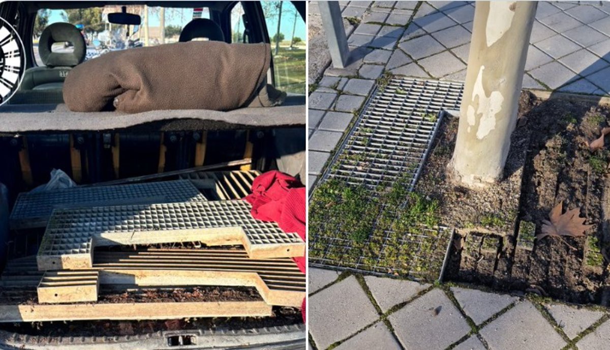 Pillan a un conductor con rejillas de alcorques robadas en Leganés - POLICÍA LOCAL DE LEGANÉS