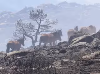 Imagen del grupo de caballos que corrían riesgo de morir quemados en el incendio de La Granja y que fueron salvados por un piloto de la brigada helitransportada de la Comunidad de Madrid. - EMERGENCIAS 112 COMUNIDAD DE MADRID