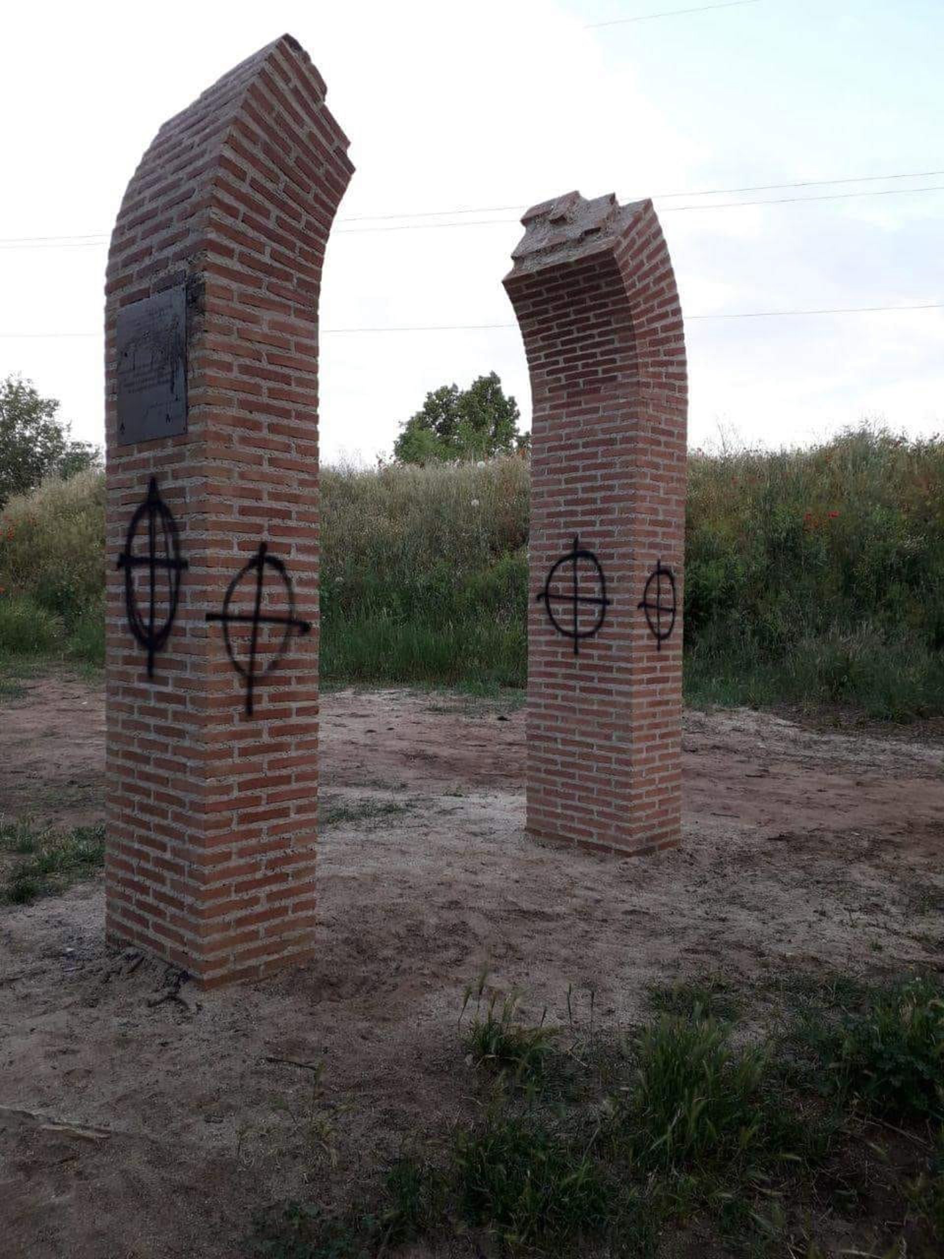 El primer ataque se produjo el 19 de mayo, con pintura negra y simbología fascista en todos los frentes de ladrillo del monumento, así como en la placa conmemorativa. La rápida intervención del Ayuntamiento y sus servicios de limpieza pudieron borrar, en la medida de lo posible, los efectos de los intolerantes.