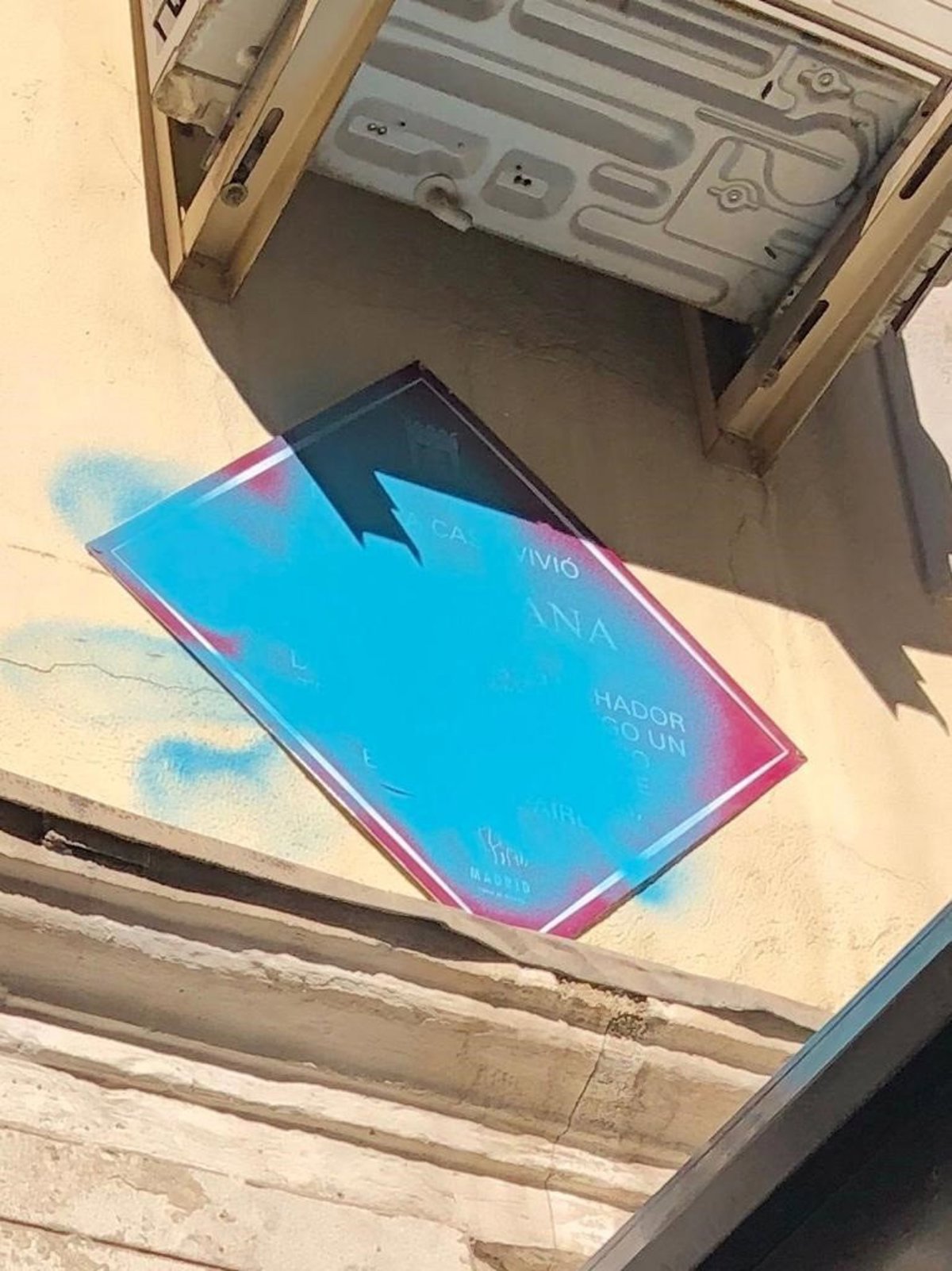 La placa en memoria del poeta Marcos Ana ha aparecido este jueves cubierta de pintura azul una semana después de su inauguración en la fachada del número 30 de la calle Narváez en la que vivió el literato. Además, cerca de este portal han escrito 'Aquí vivió Marcos Ana. Asesino'.