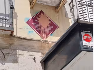Este jueves, la placa ha aparecido cubierta con manchas de pintura salmón que impide ver el nombre del poeta. En 2019, pocos días después de su inauguración en la calle Narváez, fue objeto de un ataque similar, cuando apareció manchada de pintura azul. Además, cerca de este portal escribieron 'Aquí vivió Marcos Ana. Asesino'.