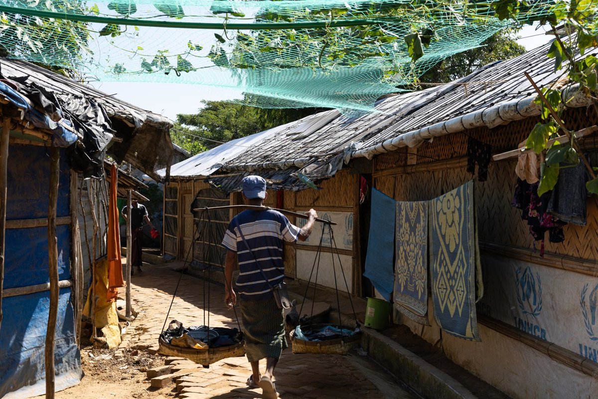 Archivo - Un hombre camina por uno de los campos de refugiados que conforman el gran asentamiento de rohingyas de Cox's Bazar, en Bangladesh. - MIRJA VOGEL - Archivo