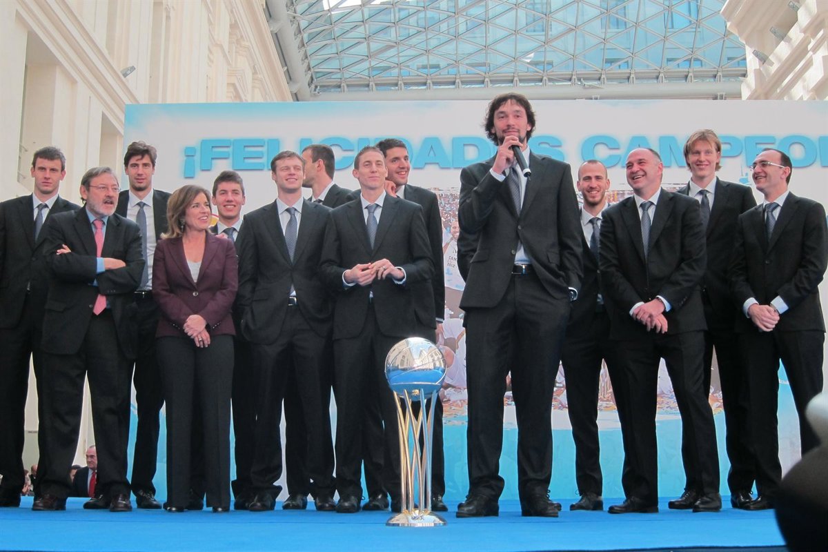 Por su parte, el capitán Felipe Reyes tenía claro que "19 años son muchos para el Real Madrid". "Estamos orgullosos de poder celebrarlo con vosotros. Espero que lo paséis igual de bien y disfrutéis lo mismo", añadió el pívot cordobés.
