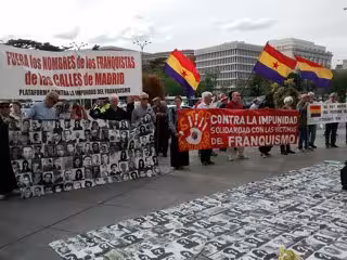 En la protesta, que se ha llevado a cabo a las 19 horas, se han mostrado diversas pancartas con frases como 'Los crímenes del franquismo no prescriben', 'Fuera los nombres de los franquistas de las calles de Madrid' o 'Contra la impunidad, solidaridad con las víctimas del franquismo'.
