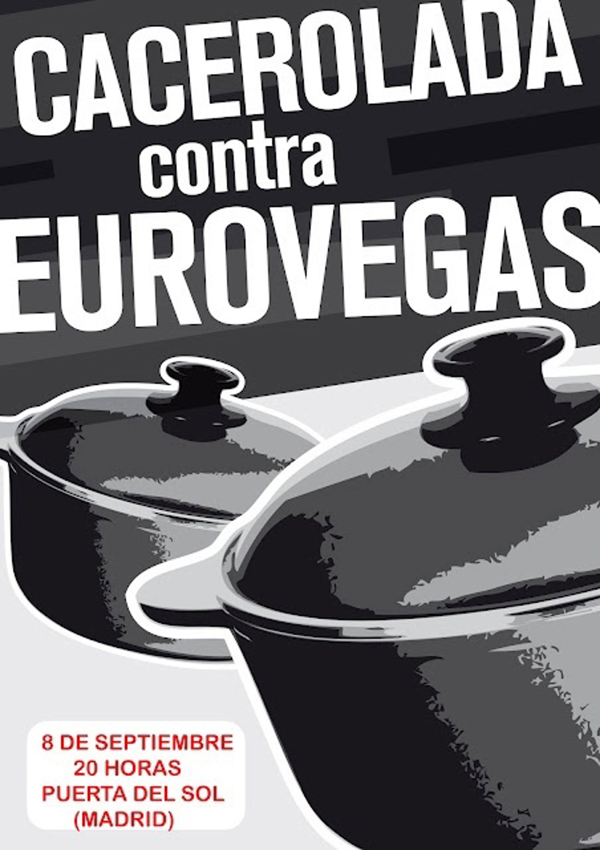 La plataforma Eurovegas No ha convocado una cacerolada este sábado a las 20 horas en la Puerta del Sol contra la decisión del magnate estadounidense Sheldon Adelson de instalar el macrocomplejo en la Comunidad de Madrid.