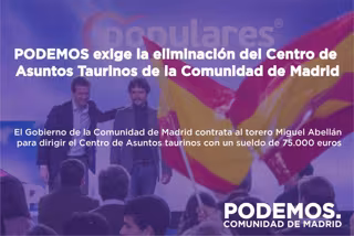 Podemos Comunidad de Madrid ha pedido este viernes el cierre del Centro de Asuntos Taurinos, ya que el nombramiento del torero Miguel Abellán como director gerente de esta entidad, con un sueldo de 75.000 euros, "demuestra una vez más como este centro ha sido y es un chiringuito del Partido Popular, auspiciado por Ciudadanos, su socio de gobierno".