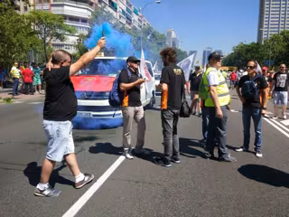 "Nos han quitado los petardos porque vamos más rezagados en la marcha", ha señalado este integrante de Caracol refiriéndose a la manifestación convocada hoy junto al paro de 24 horas por parte de algunas asociaciones del sector.