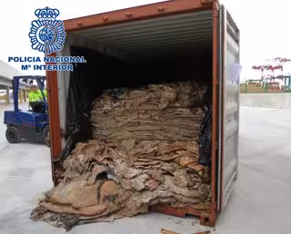 En su interior se encontraron 20.000 kilos de pieles frescas sin empaquetar, por lo que ha sido necesario extraerlas manualmente. Así se localizaron, entre pieles y sal, decenas de paquetes de cocaína con un peso total de 277 kilogramos y cuya entrega se iba a realizar en un polígono industrial de La Muela (Zaragoza).