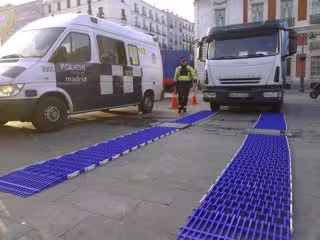 Es habitual encontrar las básculas portátiles en zonas del centro de Madrid como la Puerta del Sol, donde los agentes montan un circuito en el que, aparte del pesaje, un equipo de policías especializados en materia de transporte, comprueba la documentación y los permisos necesarios para el tipo de mercancías trasladadas.