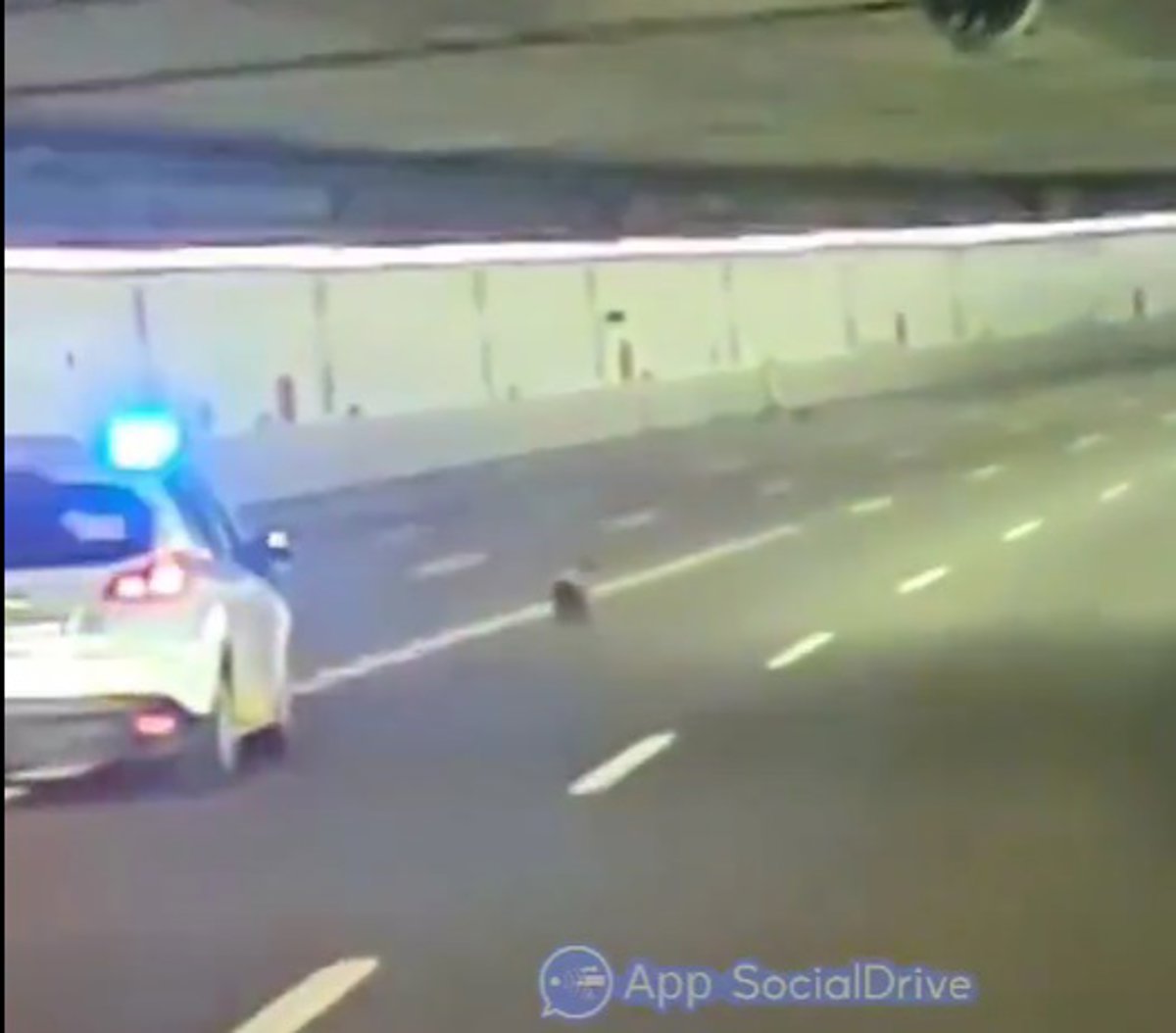 Policía Municipal escolta a un perro que corría por los túneles de la M-30 - POLICÍA MUNICIPAL DE MADRID