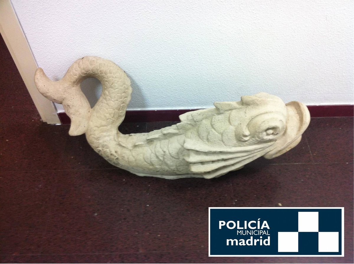 Cuando los policías de la Unidad Integral del distrito de Salamanca llegaron al lugar, hallaron una figura de piedra que podría pertenecer a la ornamentación de alguna de las fuentes de las zonas aledañas, ya que por su apariencia se trataba de un surtidor.