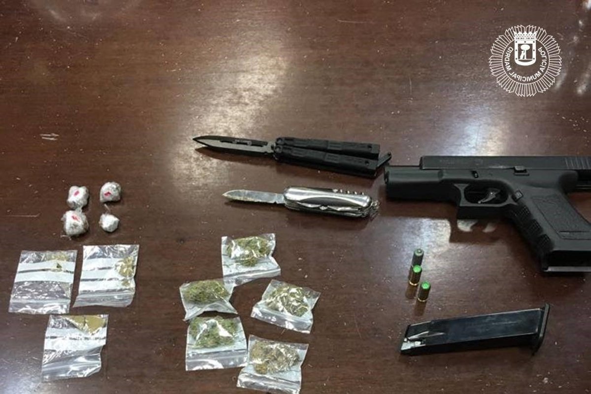 La Policía Municipal de Madrid ha intervenido tres armas (una pistola detonadora y dos navajas) y ha levantado cinco actas de tenencia de sustancias estupefacientes a un grupo de jóvenes que se reunía en la plaza del madrileño distrito de Latina, ha informado hoy el Cuerpo Local en redes sociales.