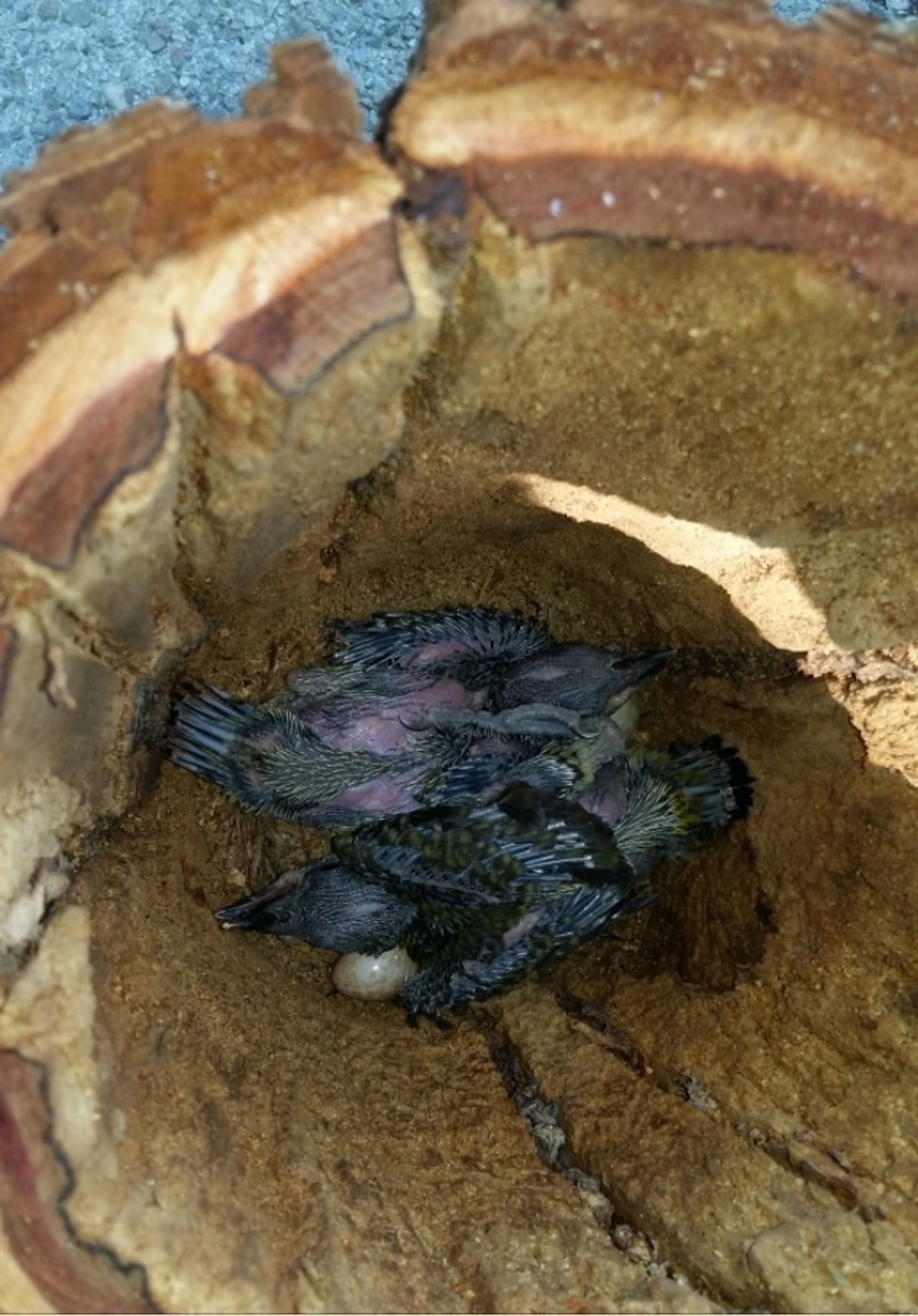 A su llegada, los agentes decidieron que se debía cortar el tronco sin dañar el nido para que los polluelos no sufrieran en el traslado al Centro de Recuperación de Aves BRINZAL, donde se les acogerá hasta que estén preparados para su puesta en libertad.