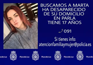 La Policía Nacional se encuentra investigando el paradero de Marta, de 17 años, que desapareció la semana pasada en Parla, han informado fuentes de la Jefatura Superior de Policía de Madrid a Europa Press.