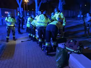 Agentes de Samur Protección Civil atienden al hombre de 43 años herido. - EMERGENCIAS MADRID
