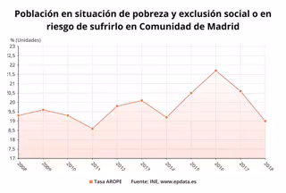 En datos nacionales, el porcentaje de población en riesgo de pobreza o exclusión social (tasa AROPE) bajó 0,5 puntos en 2018, hasta el 26,1 por ciento, por lo que se sitúa en la tasa más baja desde 2010.