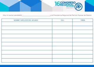El PP ha aprobado el modelo de recogida de firmas y ya están disponibles en la página web del PP de Madrid las hojas de avales. En ellas se puede leer 'Doy mi aval al candidat@ ......... a la Presidencia Regional del Partido Popular de Madrid'.
