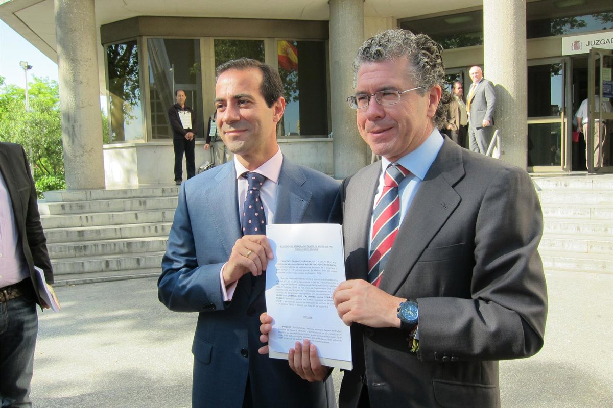 El secretario general del PP de Madrid, Francisco Granados, acompañado de uno de los abogados del Ejecutivo autonómico, ha interpuesto una querella criminal por un delito de calumnias contra el secretario general del PSM y candidato a la Presidencia de la Comunidad de Madrid, Tomás Gómez, por las acusaciones lanzadas contra la presidenta regional, Esperanza Aguirre, al insinuar que su Gobierno prevarica al "vender hospitales y colegios a sus amigos".