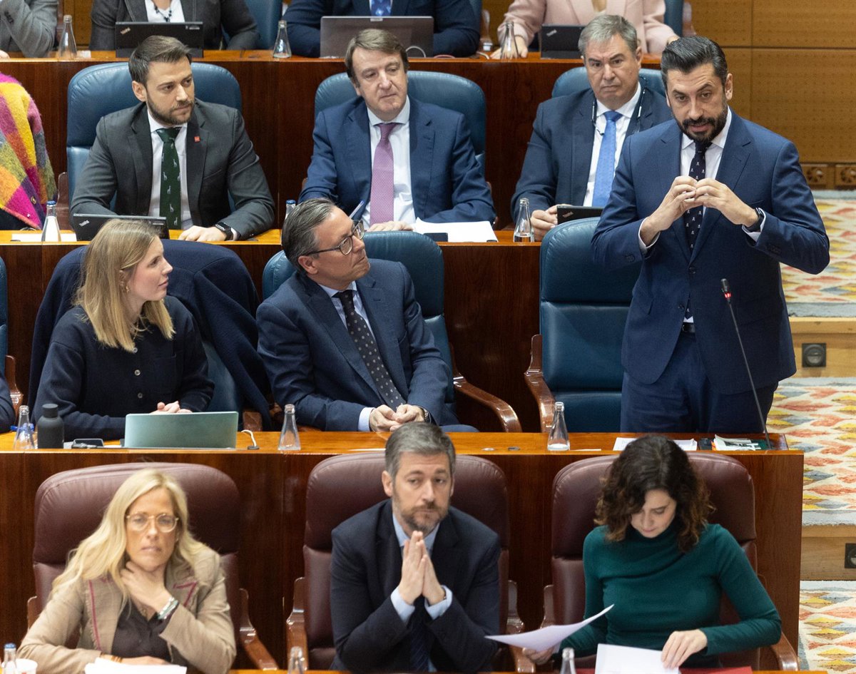 El portavoz del PP en la Asamblea de Madrid, Carlos Díaz-Pache, interviene durante un pleno en la Asamblea de Madrid, a 13 de febrero de 2025, - Eduardo Parra - Europa Press