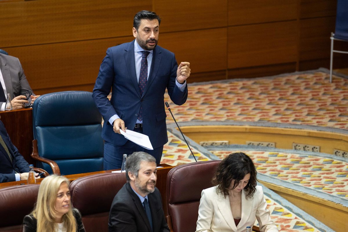 Archivo - El portavoz del PP en la Asamblea de Madrid, Carlos Díaz-Pache, interviene durante una sesión plenaria en la Asamblea de Madrid. - Ananda Manjón - Europa Press - Archivo