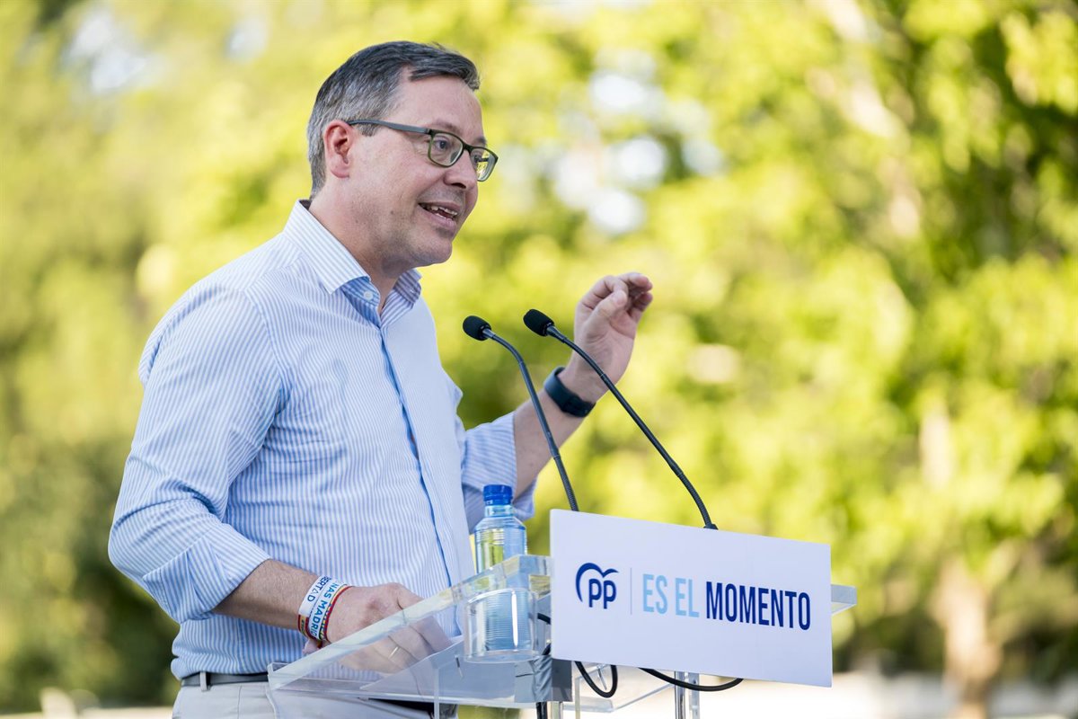 Archivo - El secretario general del PP de Madrid, Alfonso Serrano, durante un encuentro de campaña para las elecciones del 23J, en el Parque Finca Liana, a 12 de julio de 2023, en Móstoles, Madrid (España). - A. Pérez Meca - Europa Press - Archivo
