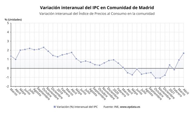 El Índice de Precios de Consumo (IPC) en la Comunidad de Madrid subió un 0,9% en abril con relación al mes anterior y situó su tasa interanual en el 1,7%, según los datos publicados por el Instituto Nacional de Estadística (INE), incremento al que ha contribuido el alza de los precios en vivienda y el transporte.