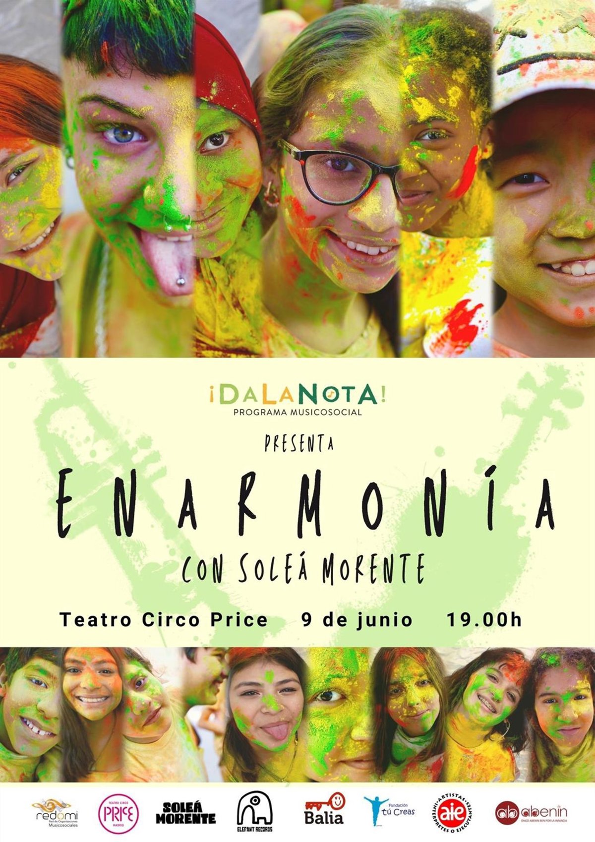 El Teatro Circo Price se inundará de solidaridad el viernes 9 de junio con la orquesta infantojuvenil DaLaNota, acompañada de la artista Soleá Morente, reivindicando la música como motor de la felicidad, la alegría de vivir y la mirada intercultural de la mano del espectáculo audiovisual 'Enarmonía'.