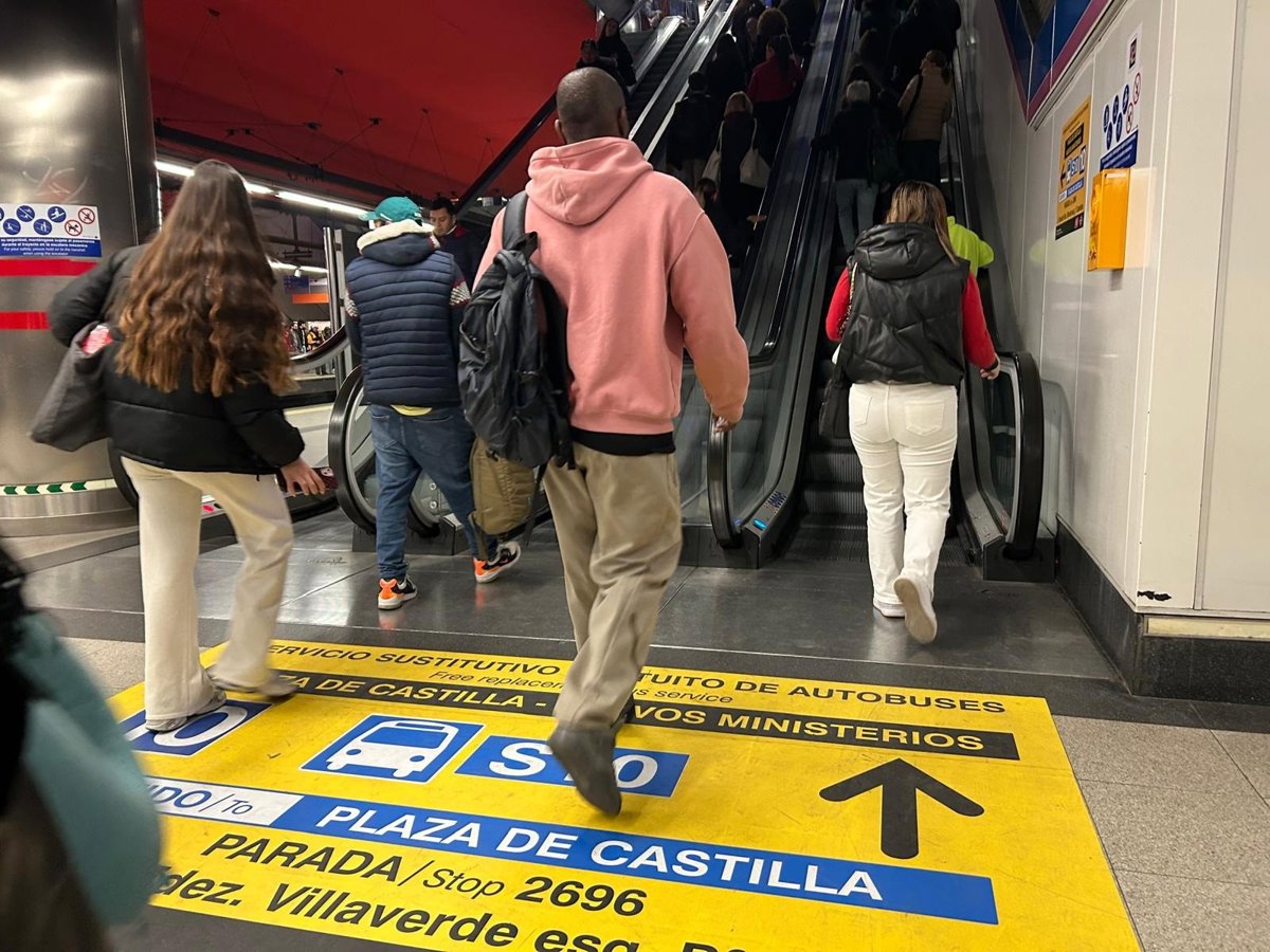 En Nuevos Ministerios, uno de los trabajadores con chaleco amarillo encargado de informar a los usuarios ha señalado que, aunque la interrupción de la línea comenzó el sábado, este lunes todavía había personas que no sabían muy bien lo que tenían que hacer.