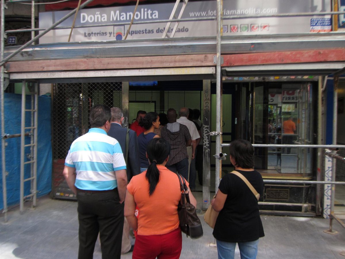 La nueva administración de 'Doña Manolita' en la calle del Carmen, que sustituye a su clásico emplazamiento en la Gran Vía, registraba a las 11.15 horas de este martes sus primeras colas nada más abrir sus puertas a los clientes en esta que será su nueva ubicación.
