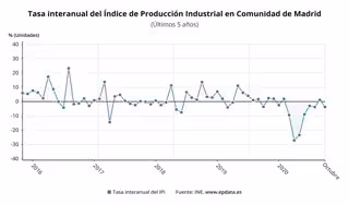 El retroceso registrado en la Comunidad de Madrid se trata del sexto mejor dato en la evolución del IPI del país que cayó en 14 comunidades autónomas y aumentó en las otras tres.