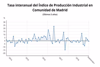La producción industrial en la Comunidad de Madrid descendió un 0,6 por ciento en el mes de septiembre en relación al mismo mes del año pasado aunque el índice del conjunto de 2018 arroja una subida del 0,2 por ciento.