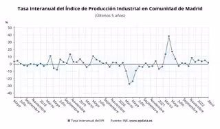 El Índice General de Producción Industrial (IPI) en la Comunidad de Madrid subió un 2% en abril, en comparación con el mismo mes del año anterior, 2,4 puntos porcentuales más que la media nacional (-0,4%). En términos mensuales (abril sobre marzo), este índice retrocedió 4,6 puntos en la región.