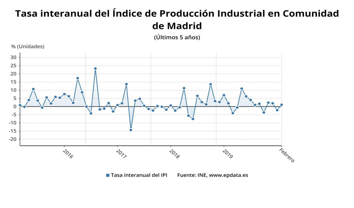 Evolución de la producción industrial en la Comunidad de Madrid hasta febrero de 2020. - EPDATA
