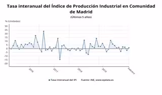 La producción industrial en la Comunidad de Madrid creció un 1,1 por ciento en febrero con respecto al mismo mes del año pasado, si bien registra un retroceso del 0,6 por ciento en el conjunto de los dos primeros meses del año.